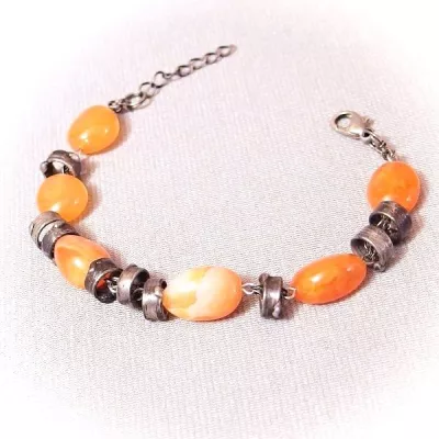 Náramek s karneolem a cínovanými korálky. Zlatohnědé valounky z karneolu propojené ručně cínovanými korálky.