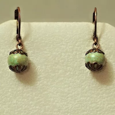 Pravý tyrkys průměr 8 mm, staroměděné kovové komponenty.