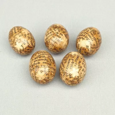 Velikonoční vajíčka ve vintage stylu. Ručně zdobená vajíčka s motivem písma (švabach). Středně hnědá patina koláže je doplněna světle hnědými kytičkami. Jednotlivé kusy se mohou mírně lišit umístěním vzoru.